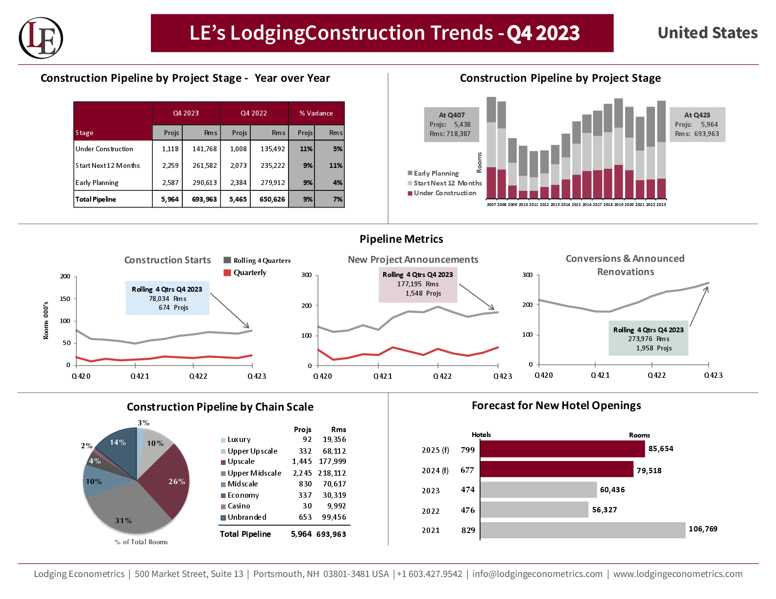 To view this data at a regional or market level, or to find out how you can receive the individual record detail behind these projects, and learn about AHLA Allied member Lodging Econometrics’ continuously updated, comprehensive, Online Database of Hotel Records, please contact JP Ford, ISHC at jpford@lodgingeconometrics.com. We also can provide hotel development intelligence outside of the U.S. www.lodgingeconometrics.com